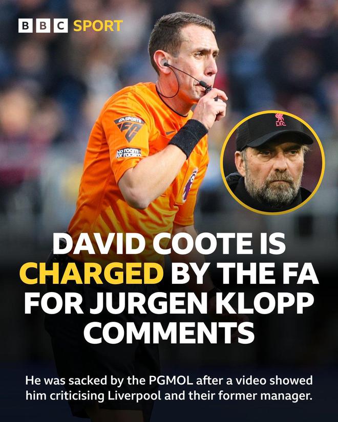 大卫-库特因违反英足总(FA)规则E3而被指控,原因是他在2020年7月左右录制的一段视频中针对尤尔根-克洛普发表了不当言论,该视频于2024年11月在社交媒体上曝光。